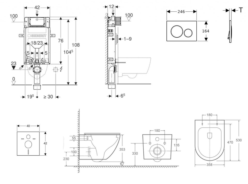 - vybavený rúrkovou chráničkou pre prívodné potrubie na pripojenie sprchovacích WC Geberit AquaClean