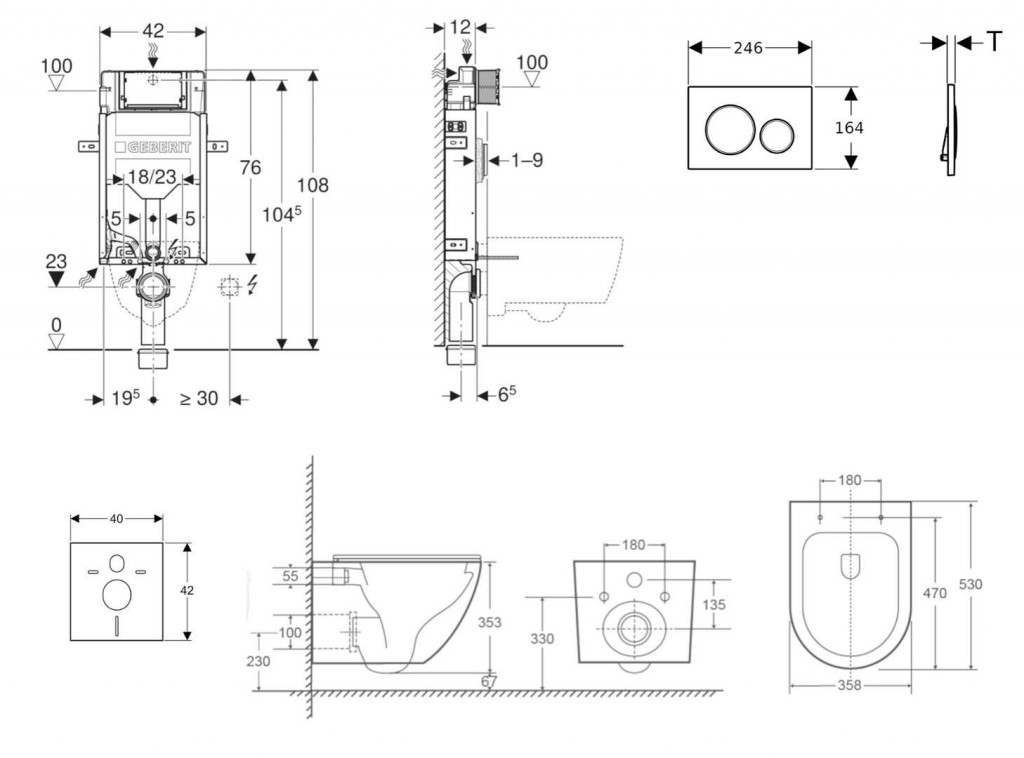 - vybavený rúrkovou chráničkou pre prívodné potrubie na pripojenie sprchovacích WC Geberit AquaClean