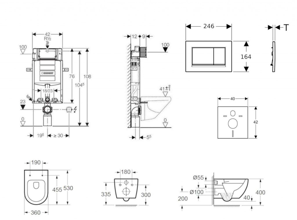 - pre závesné WC alebo závesný bidet
