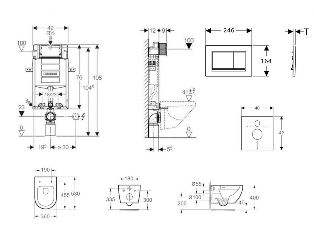 - vybavený rúrkovou chráničkou pre prívodné potrubie na pripojenie sprchovacích WC Geberit AquaClean
