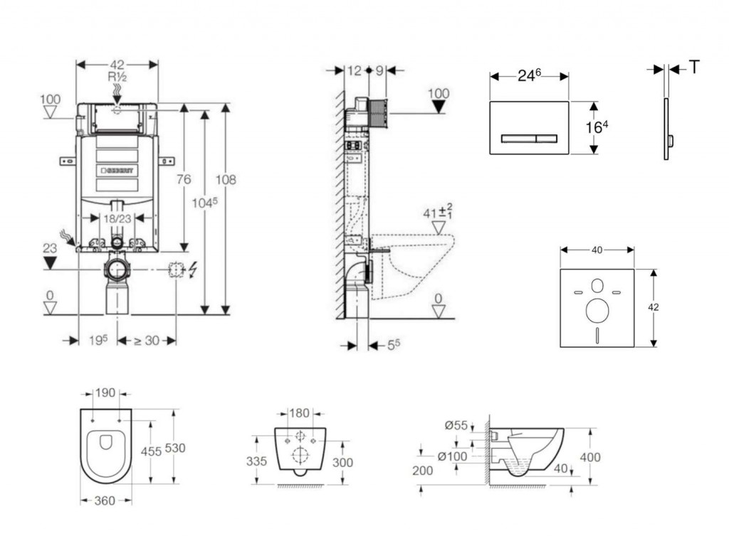 - vybavený rúrkovou chráničkou pre prívodné potrubie na pripojenie sprchovacích WC Geberit AquaClean