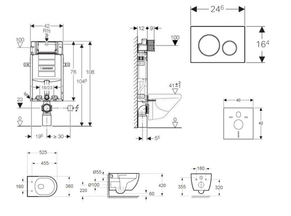 - predstenový inštalačný modul Geberit Kombifix so splachovacou nádržkou pod omietku