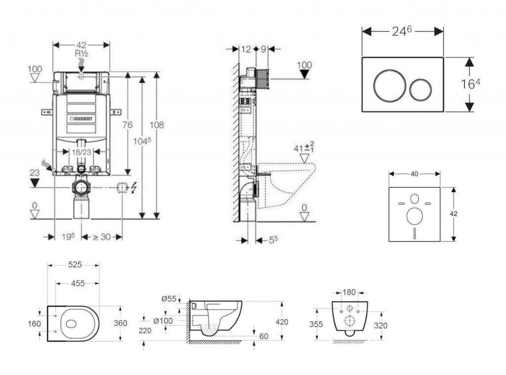 - predstenový inštalačný modul Geberit Kombifix so splachovacou nádržkou pod omietku