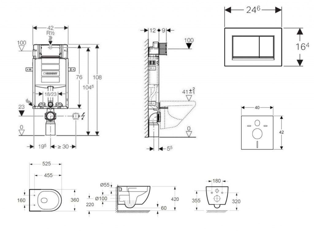 - vybavený rúrkovou chráničkou pre prívodné potrubie na pripojenie sprchovacích WC Geberit AquaClean