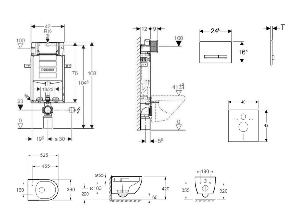 - predstenový inštalačný modul Geberit Kombifix so splachovacou nádržkou pod omietku