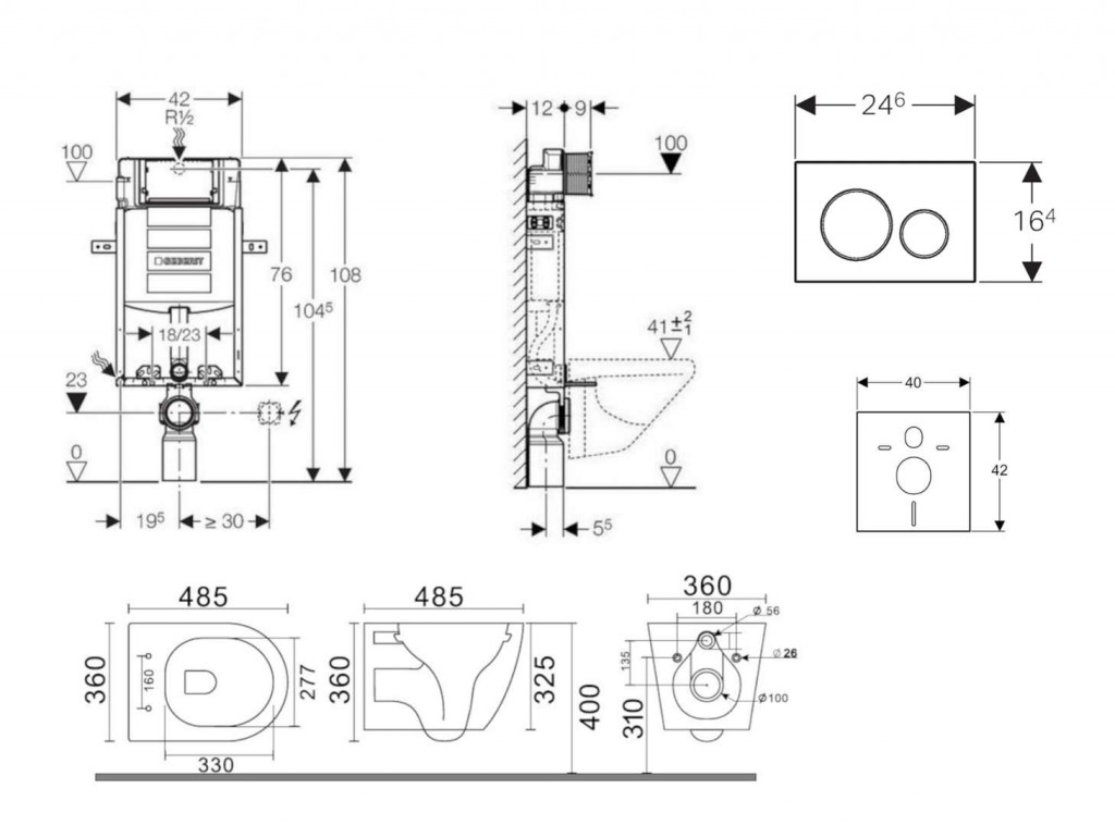 - vybavený rúrkovou chráničkou pre prívodné potrubie na pripojenie sprchovacích WC Geberit AquaClean