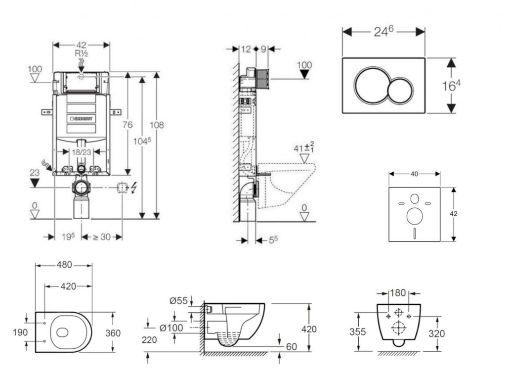 - predstenový inštalačný modul Geberit Kombifix so splachovacou nádržkou pod omietku