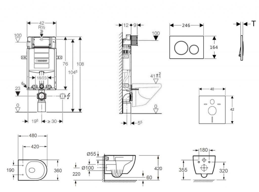 - predstenový inštalačný modul Geberit Kombifix so splachovacou nádržkou pod omietku