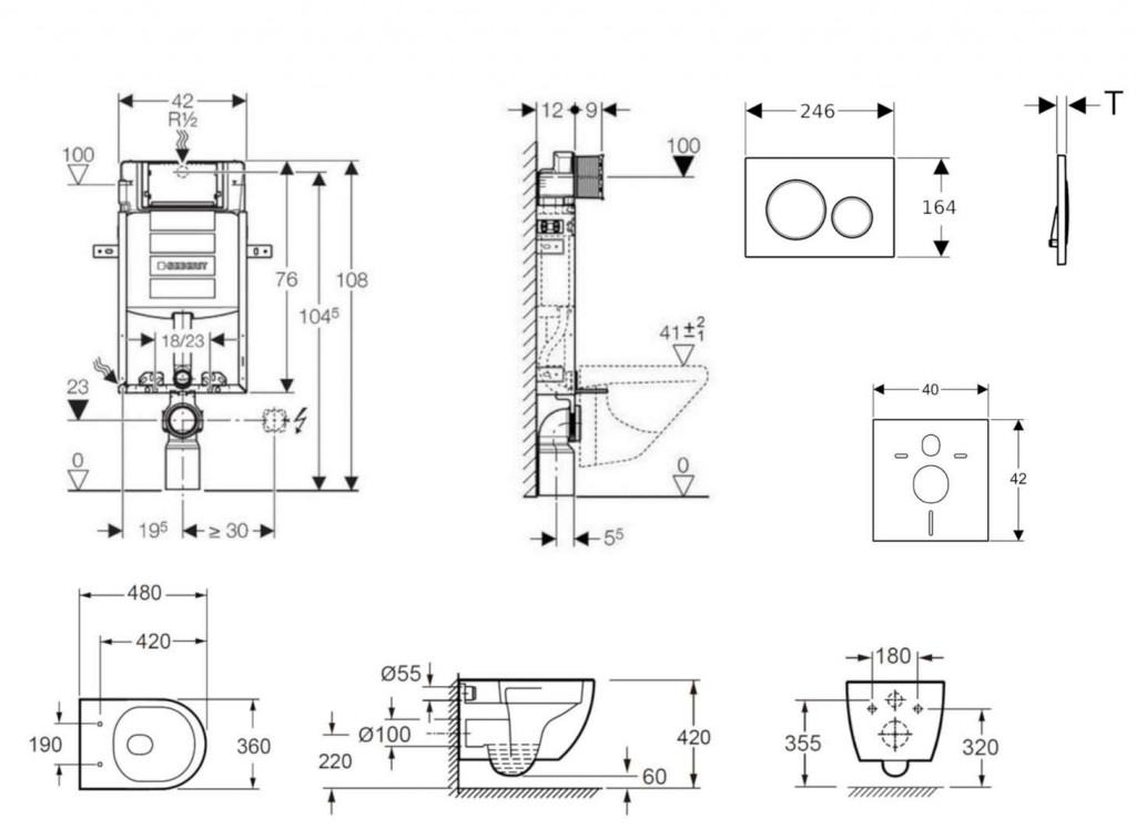 - predstenový inštalačný modul Geberit Kombifix so splachovacou nádržkou pod omietku