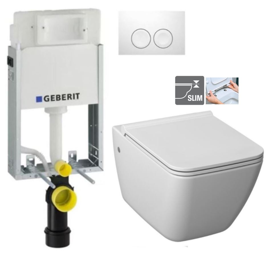 Pozor na výšku osi odpadu, ktorá je oproti bežným klozetům o 3 cm vyššie. Správne nastavenie vypúšťacieho ventilu v podomietkovom modulu je splachovacie množstvo 4,5 / 3l.
