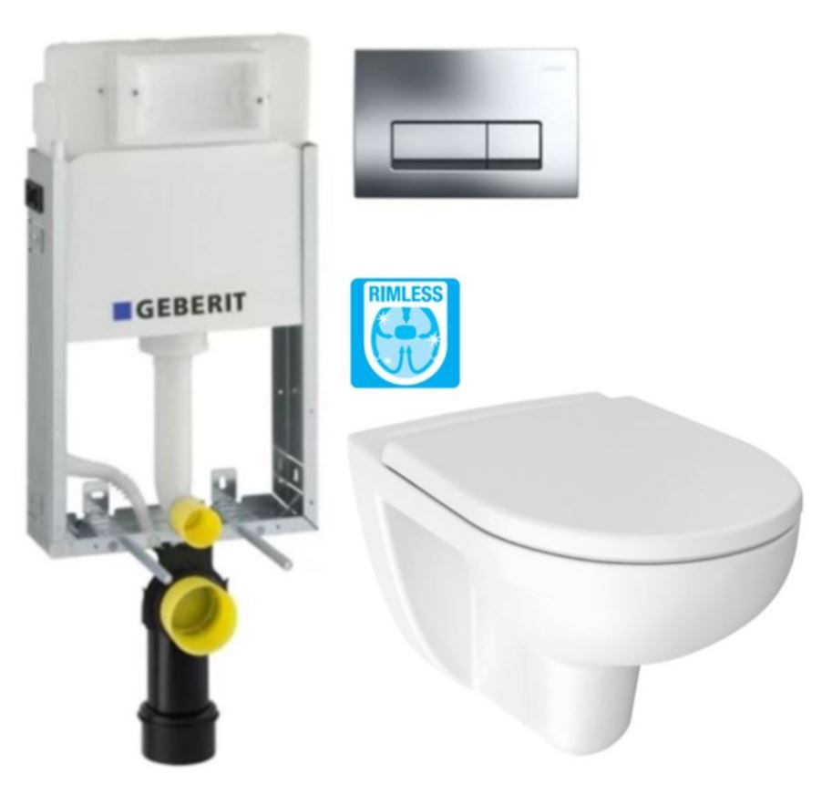 WC kombi RIMLESS / bez splachovacieho kruhu / = je moderný systém splachovania, ktorý sa charakterizuje znamenitou funkčnosťou a vysokou hygienou oproti bežným klozetům so splachovacím kruhom. U bežných klozetov môže dochádzať k zachytávanie nečistôt vo splachovacím kruhu pod okrajom misy. Súčasný systém zaisťuje dokonalý rozvod vody a jednoduché čistenie - všetok priestor vo vnútri misy je smaltovaný a jednoducho čistiteľný.