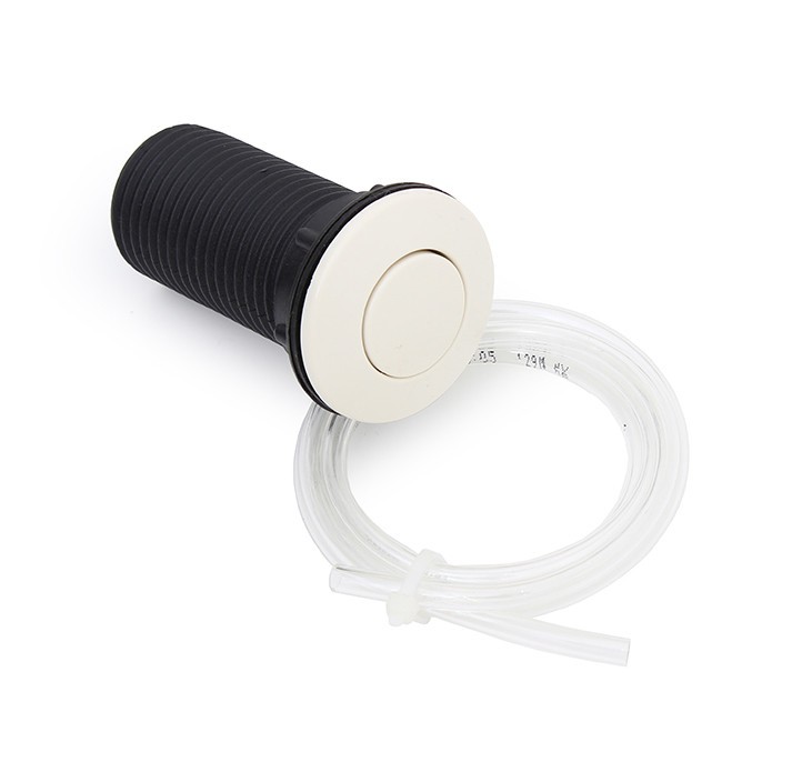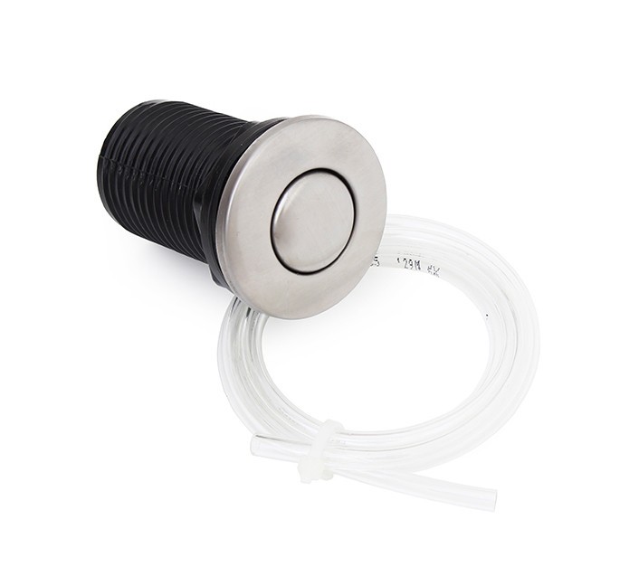 Komplet Pneu-tlačidlo vr. hadičky je určený pre drviče EcoMaster so vstavaným vzduchovým spínačom. Pre jednoduché, pohodlné a zároveň bezpečné ovládanie drviča EcoMaster. Tento variant je najpoužívanejší, pretože drvič sa zapína a vypína vždy v súčinnosti s vodou, a takto môže byť tlačidlo umiestnené v bezprostrednej blízkosti batérie, tzv. Poruke. Umiestnenie: Do pracovnej dosky, alebo priamo do voľných plôch drezu. Bezpečnosť: Pneuspínač spĺňa všetky požiadavky na bezpečnosť, pretože jeho tlačidlo nedáva priamo el. impulz, ale tlakom stlačeného vzduchu zopne až chránenú elektrickú časť, umiestnenú priamo v tele drviča. Tlačidlo a drvič odpadu sú spojené len vzduchovou hadičkou.