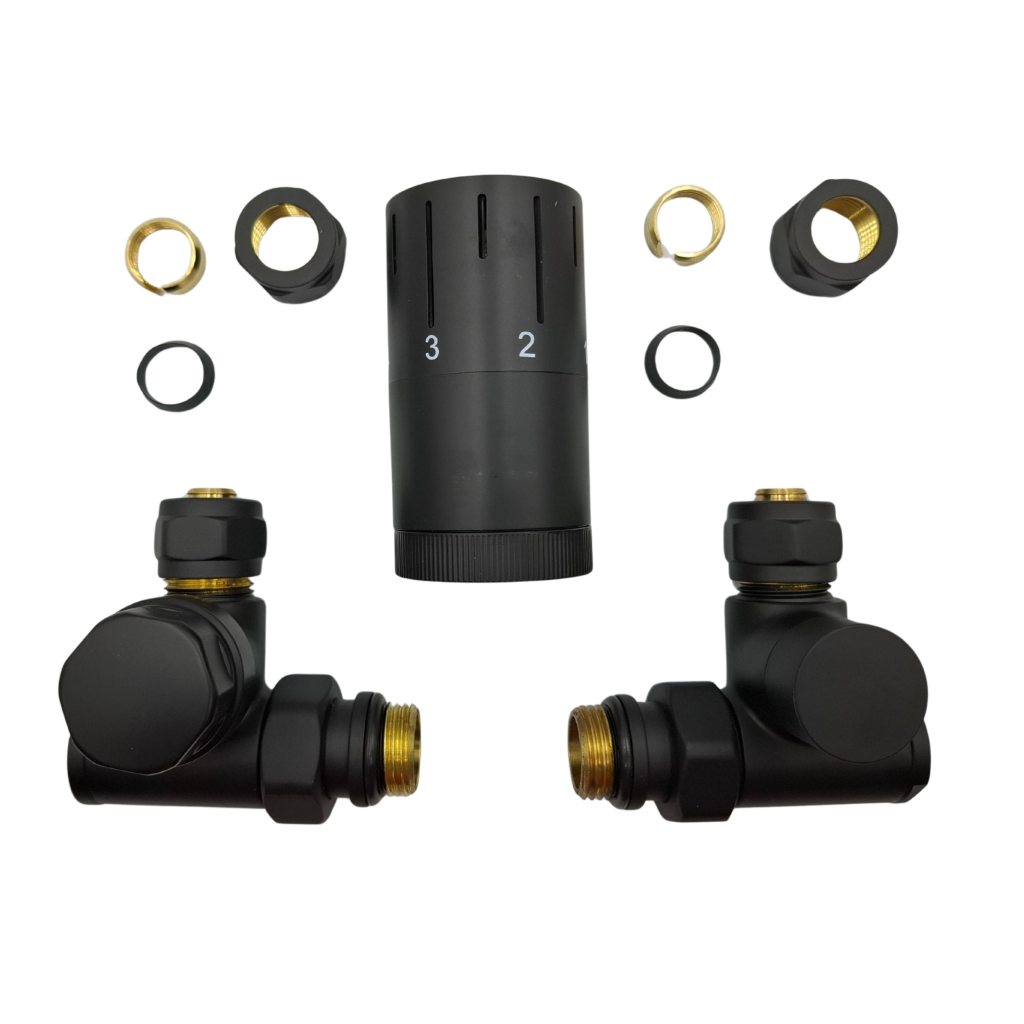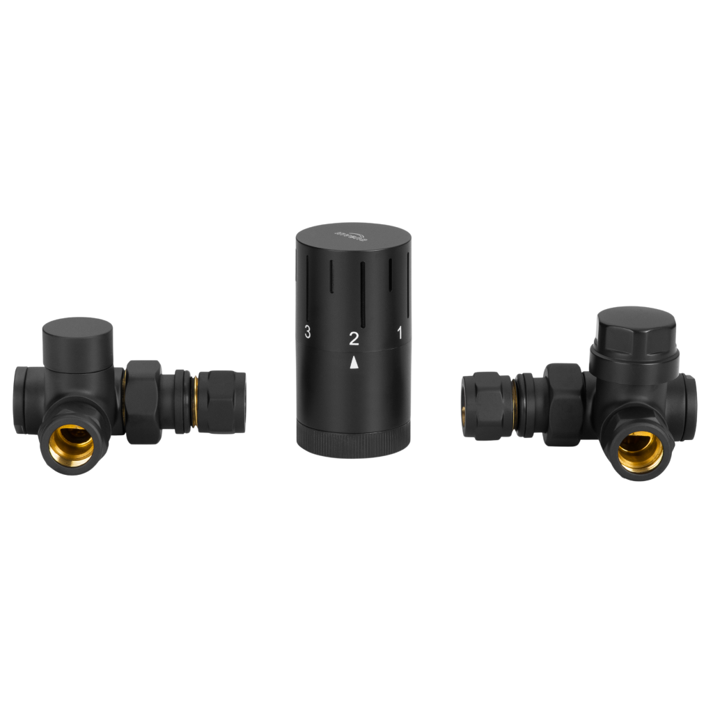 Na pripojenie kúpeľňového radiátora v medenom alebo PEX systéme, ľavom alebo pravom. Sada obsahuje: - 1/2" spojky radiátorov pre 15mm medené a 16mm PEX systémy - termostatickú hlavicu M30x1,5 - prívodný a vratný ventil. Pre výmenu strán axiálnej sady (zľava doprava) odskrutkujte vložku zo spätného a prívodného ventilu, prehoďte strany a zaskrutkujte.