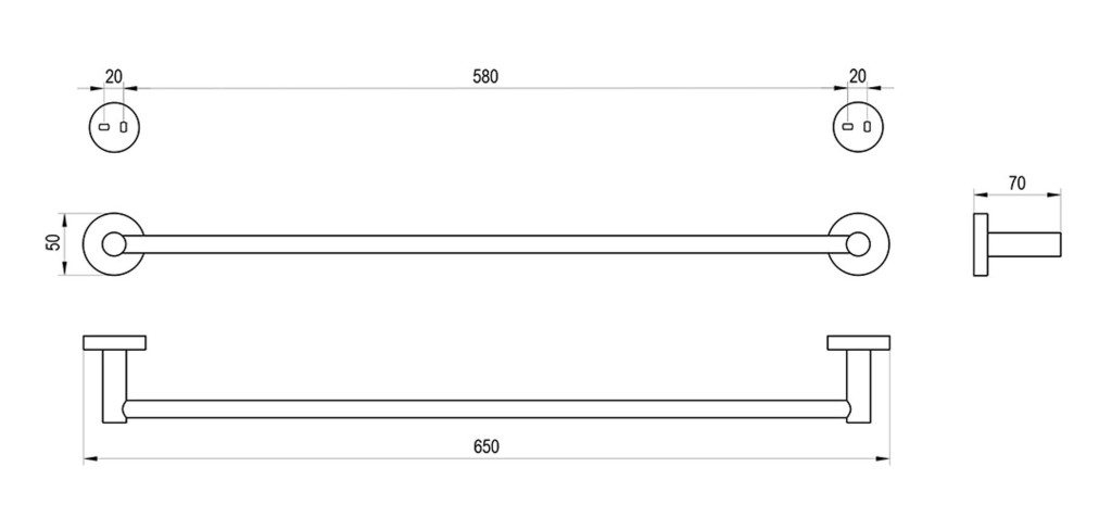 - rozmery 650 x 70 x 50 mm