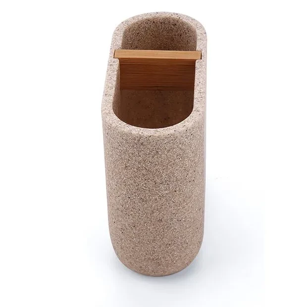 NIMCO Kora Dóza na kefky KO 24057-86 Dóza na kefky. Farba pieskovo béžová. Materiál polyresin, bambusové drevo.
