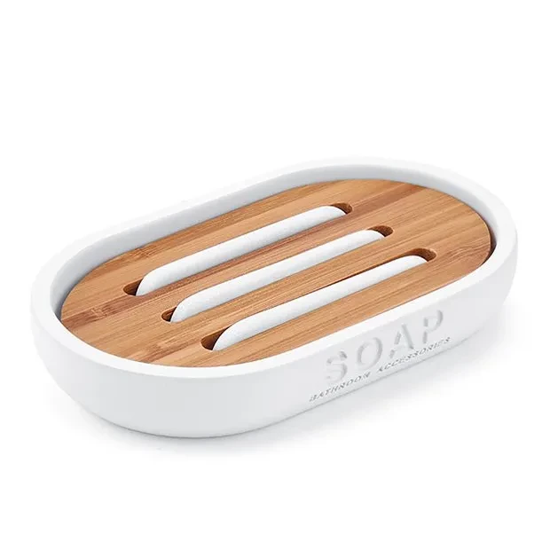 NIMCO Kora Mydelnička KO 24059-05 Mydelnička. Farba biela. Materiál polyresin, bambusové drevo.