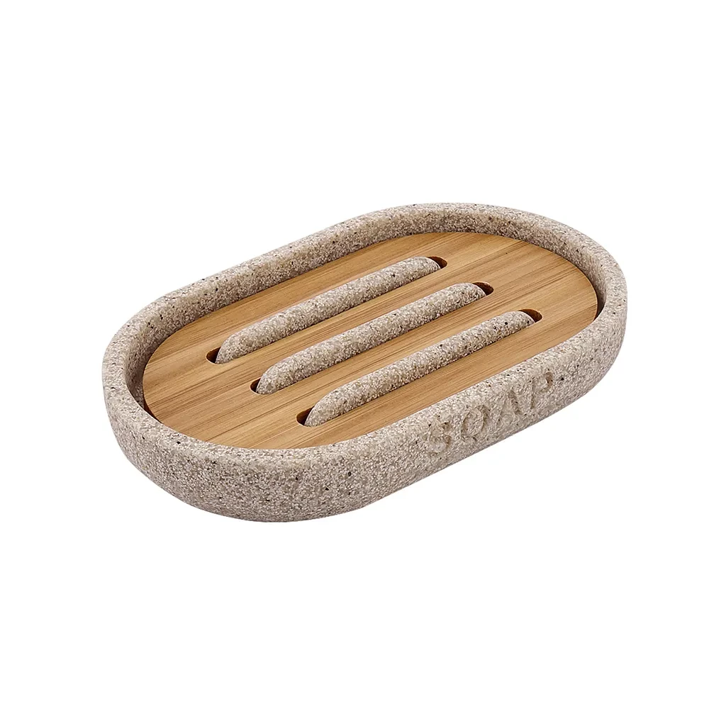 NIMCO Kora Mydelnička KO 24059-86 Mydelnička. Farba pieskovo béžová. Materiál polyresin, bambusové drevo.