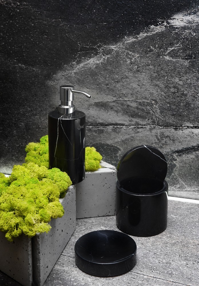 Štýlová kozmetická nádobka s vekom je jedným z prvkov unikátnej kolekcie Pure Natural – kúpeľňových doplnkov Q-BATH z mramoru. Bezkonkurenčná kvalita použitého materiálu a jedinečný a klasický dizajn z neho robí jeden z najkrajších prvkov kamennej kolekcie. Čierny mramor mu dodáva elegantný charakter. Kozmetický zásobník je perfektným riešením na ukladanie kozmetických predmetov. Stane sa tiež štýlovým doplnkom každého toaletného stolíka alebo miestom na uloženie cenných šperkov. Jeho mohutná silueta dodáva charakter. Výrobky z prírodného kameňa sa môžu líšiť farbou, odtieňom, vzorom a štruktúrou. V závislosti od povahy kamenného bloku, z ktorého je kameň brúsený, môžu existovať rozdiely v prevládajúcej farbe daného výrobku. Vzor na prírodnom kameni je jedinečný.