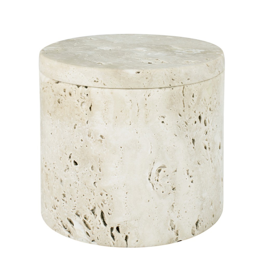 Štýlová kozmetická nádoba s vekom je jedným z prvkov kolekcie Pure Natural - kúpeľňových doplnkov Q-BATH z travertínu. Bezkonkurenčná kvalita použitého materiálu a jedinečný a klasický dizajn z neho robí jeden z najkrajších prvkov kamennej kolekcie. Teplé odtiene béžovej a poréznej štruktúra travertínu tvoria originálne duo. Farby v kompozícii pripomínajú púšte a exotické pláže. Je perfektným riešením na ukladanie kozmetických predmetov. Stane sa tiež štýlovým doplnkom každého toaletného stolíka alebo miestom na uloženie cenných šperkov. Výrobky z prírodného kameňa sa môžu líšiť farbou, odtieňom, vzorom a štruktúrou. V závislosti od povahy kamenného bloku, z ktorého je kameň brúsený, môžu existovať rozdiely v prevládajúcej farbe daného výrobku. Vzor na prírodnom kameni je jedinečný.