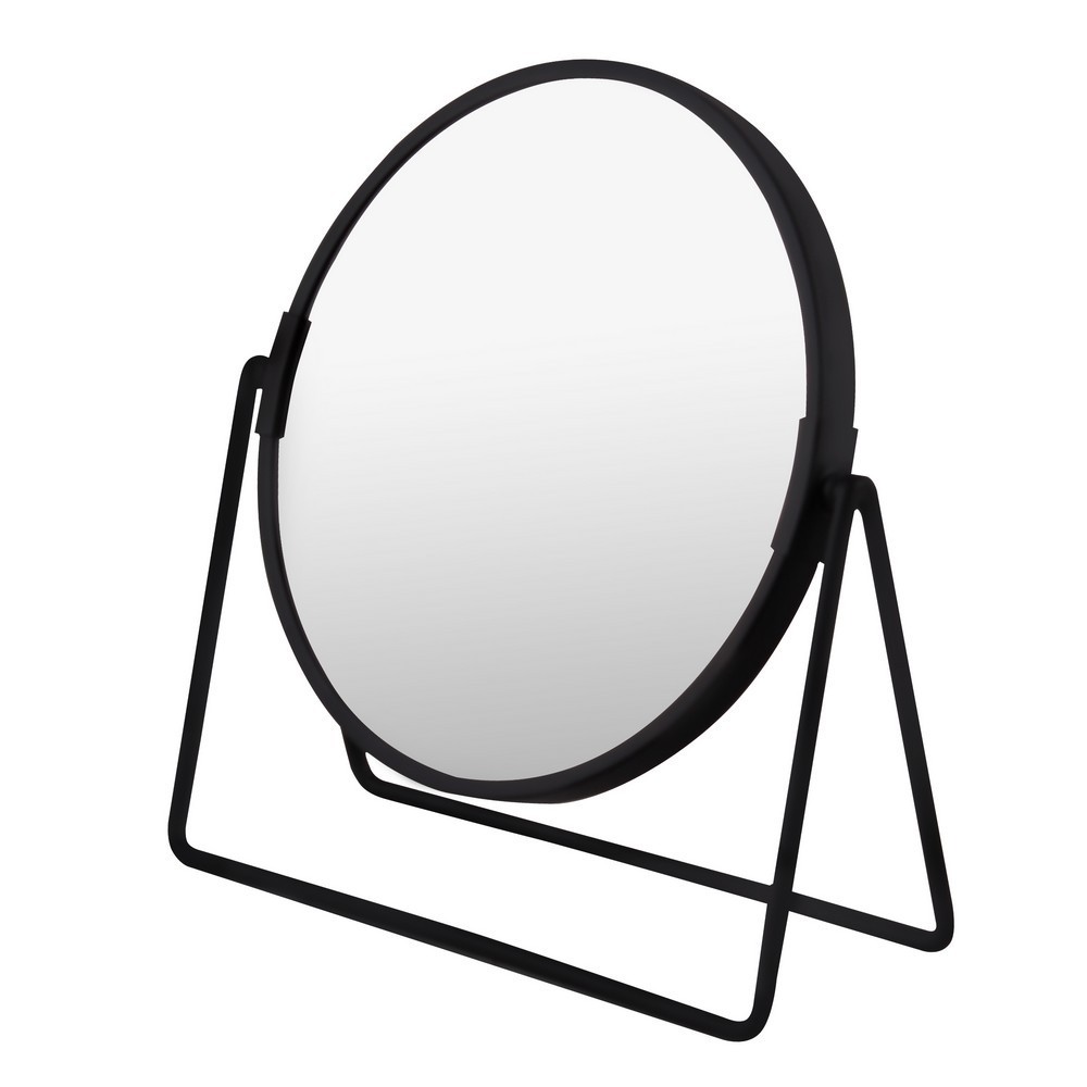 Veľmi šikovné a praktické kozmetické zrkadlo s pohodlným nastavením uhla sklonu. Zrkadlo je určené na postavenie a je vyrobené z lakovaného čierneho kovu a zrkadlá, vďaka tomu je zaistený elegantný vzhľad.
