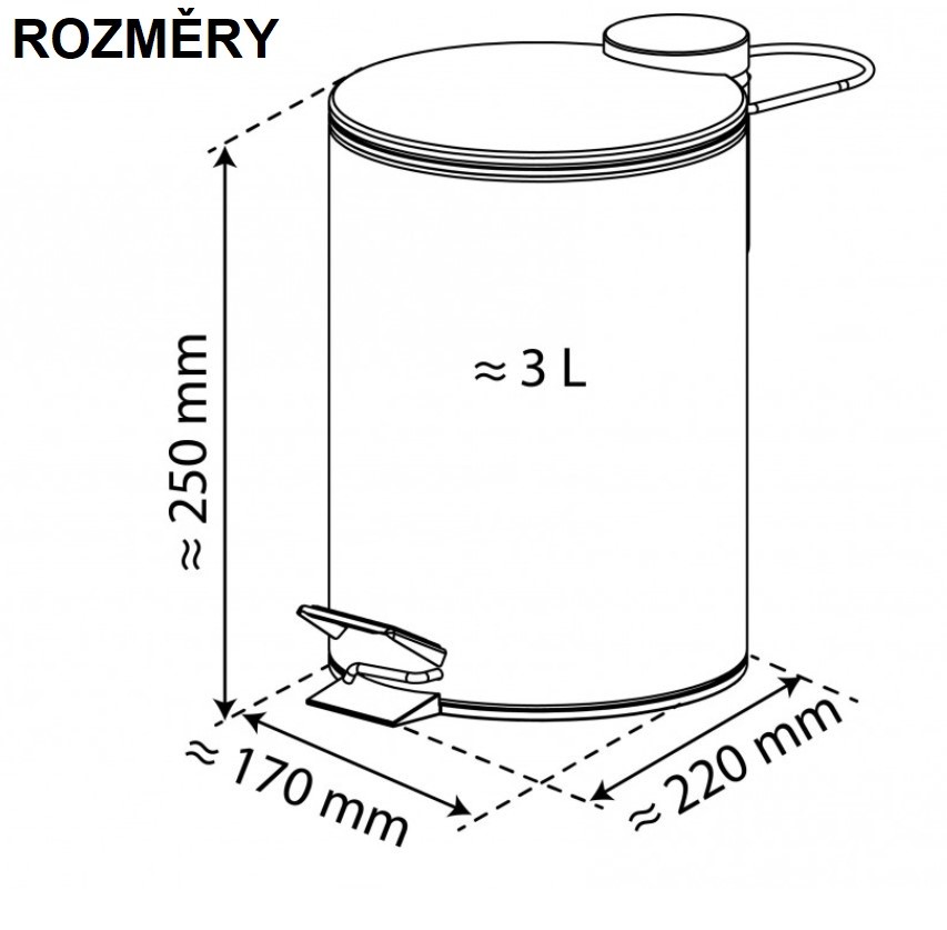 Kozmetický pedálový kôš, čierny, cca 3 l, s automatickým spúšťaním