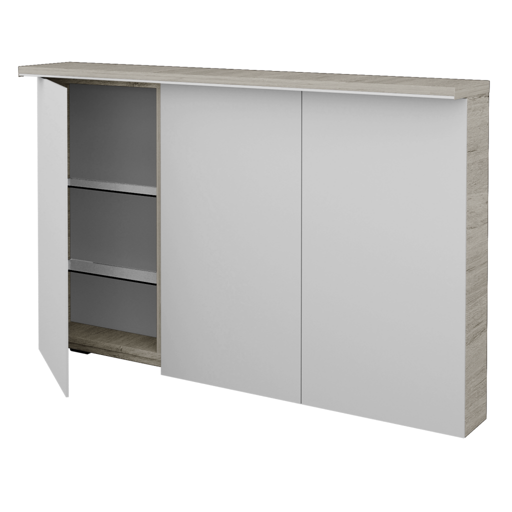 - 3D - otvárateľná predná časť skrinky je tvorená tromi obojstrannými zrkadlami.