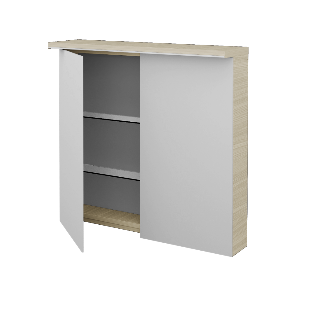 Kúpeľňovú galérku ASTON GA2OE 80 vyrábame z kvalitných LTD dosiek s možnosťou výberu farebného spracovania povrchu z celého radu dekorov či lakov. Galérka je dvojdverová a je vybavená obojstranným zrkadlom uloženým na , ktoré drží špeciálna zrkadlová lišta, chránená českým patentom.