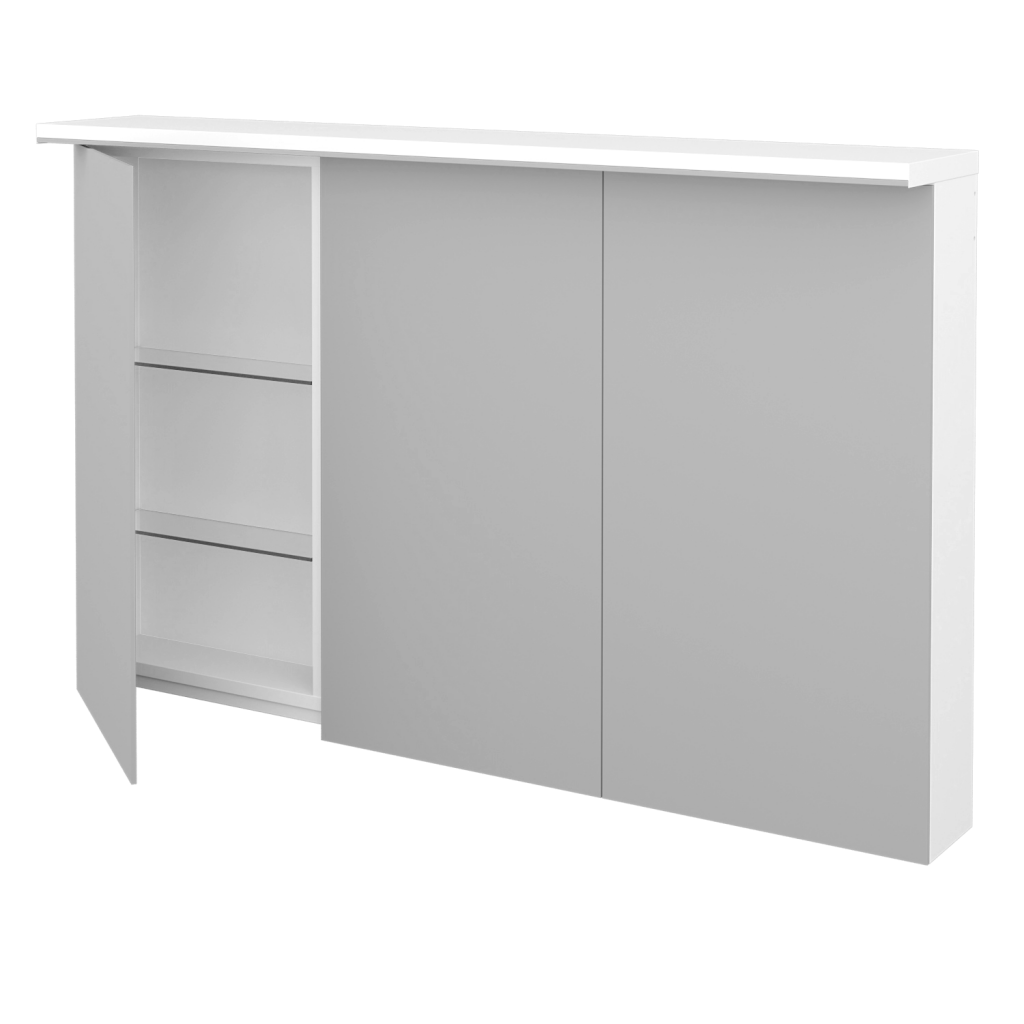 Parametre galérkyGalérka sa veľmi ľahko otvára pomocou spodnej hrany zrkadla, ktorá tvorí presah nad korpus galérky. Dvierka disponujú obojstranným zrkadlom a tlmeným dovieraním. Vnútri galérky je 6 sklenených nastaviteľných políc, ktoré je možné výškovo nastaviť do troch rôznych polôh.