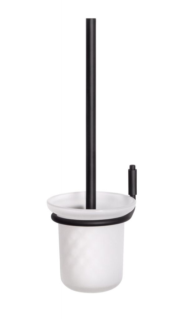 Séria MINI v modernej čiernej farbe je tvorená dávkovačom mydla, WC štetkou, háčikom, držiakom toaletného papiera a držiakom na uteráky.