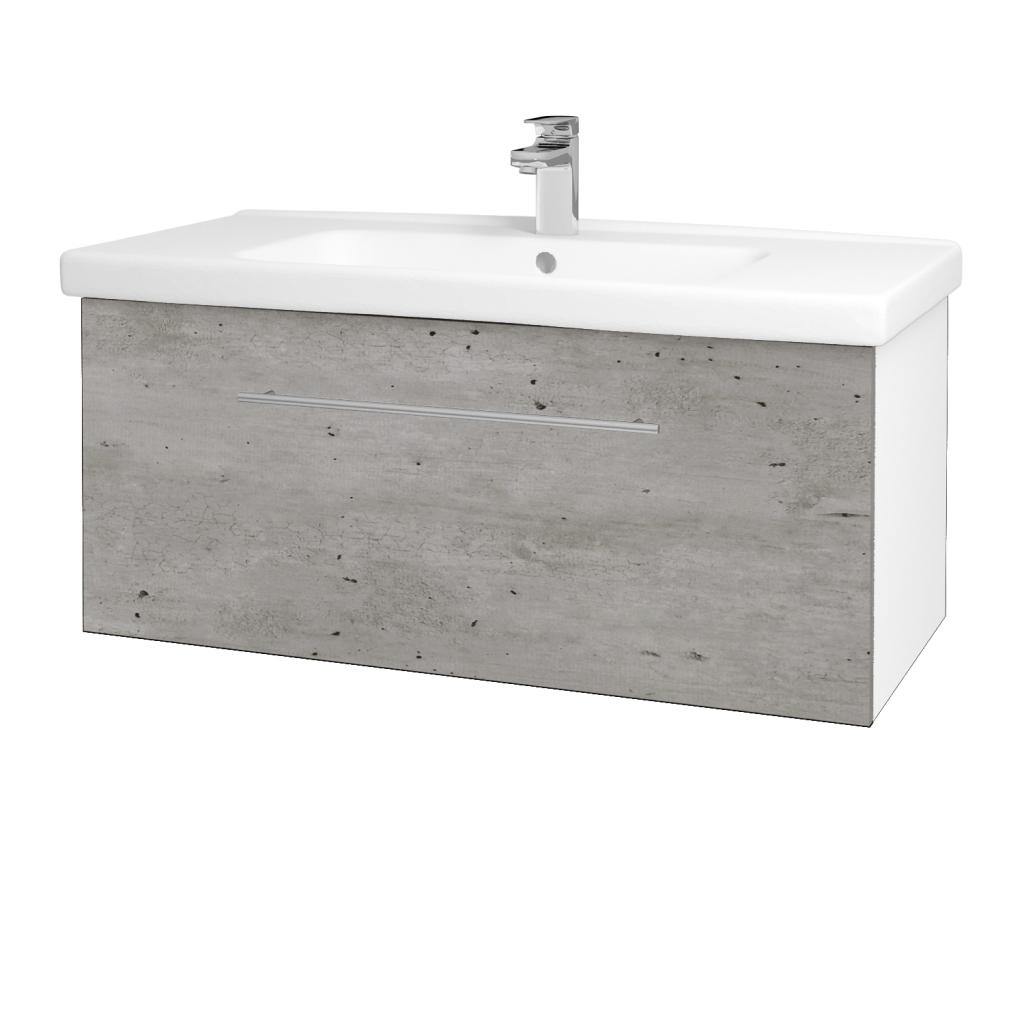 Dreja - Umývadlová skrinka BIG INN SZZ 100 - N01 Biela lesk / Úchytka T02 / D01 Betón (128142B)