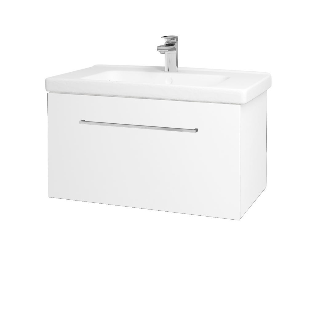 Súčasťou ceny tejto kúpeľňovej skrine je s hranatým tvarom a pochrómovaným odtokom. Vanička umývadla má v prednej časti praktické zošikmenie. Horná plocha umývadla je rovná a môže slúžiť na odkladanie rôznych predmetov.