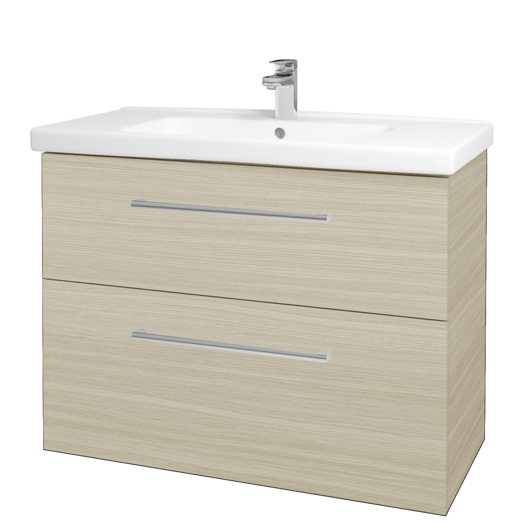 Súčasťou ceny tejto kúpeľňovej skrine je kvalitné keramické s hranatým tvarom a pochrómovaným odtokom. Vanička umývadla má v prednej časti praktické zošikmenie. Horná plocha umývadla je rovná a môže slúžiť na odkladanie rôznych predmetov.
