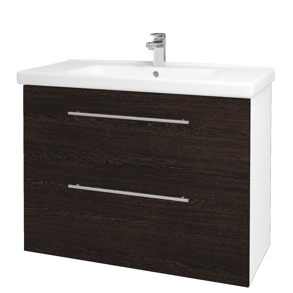 Súčasťou ceny tejto kúpeľňovej skrine je kvalitné keramické s hranatým tvarom a pochrómovaným odtokom. Vanička umývadla má v prednej časti praktické zošikmenie. Horná plocha umývadla je rovná a môže slúžiť na odkladanie rôznych predmetov.