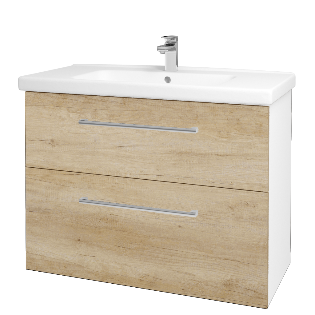 Súčasťou ceny tejto kúpeľňovej skrine je kvalitné keramické s hranatým tvarom a pochrómovaným odtokom. Vanička umývadla má v prednej časti praktické zošikmenie. Horná plocha umývadla je rovná a môže slúžiť na odkladanie rôznych predmetov.