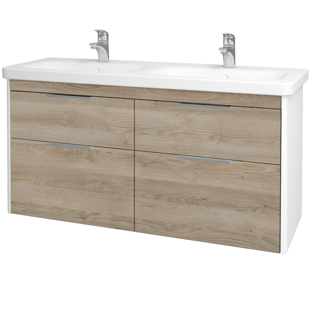 Kúpeľňová skrinka ENZO SZZ2 130 je vyrobená v závesnom prevedení. Šírka skrinky (130 cm po hrany umývadla) poskytuje dostatočný priestor na uskladnenie kúpeľňových pomôcok, prípravkov či uterákov.
