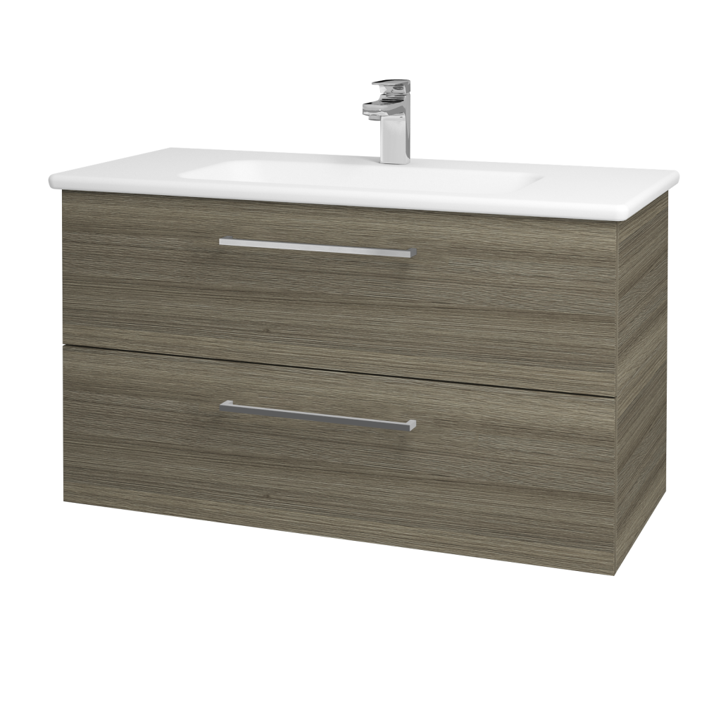 Kúpeľňová skrinka GIO SZZ2 100 v závesnom prevedení je vybavená dvoma priestornými zásuvkami. Skrinka je osadená keramickým s priestornou odkladacou plochou.