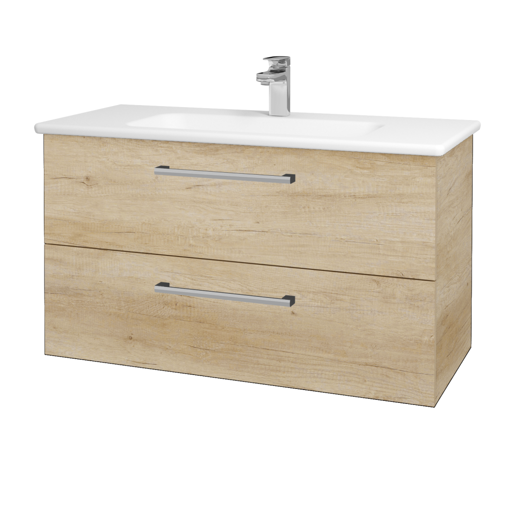 Kúpeľňová skrinka GIO SZZ2 100 v závesnom prevedení je vybavená dvoma priestornými zásuvkami. Skrinka je osadená keramickým s priestornou odkladacou plochou.