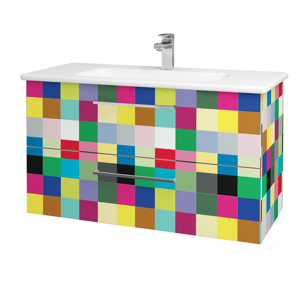 Kúpeľňová skrinka GIO SZZ2 100 v závesnom prevedení je vybavená dvoma priestornými zásuvkami. Skrinka je osadená keramickým s priestornou odkladacou plochou.