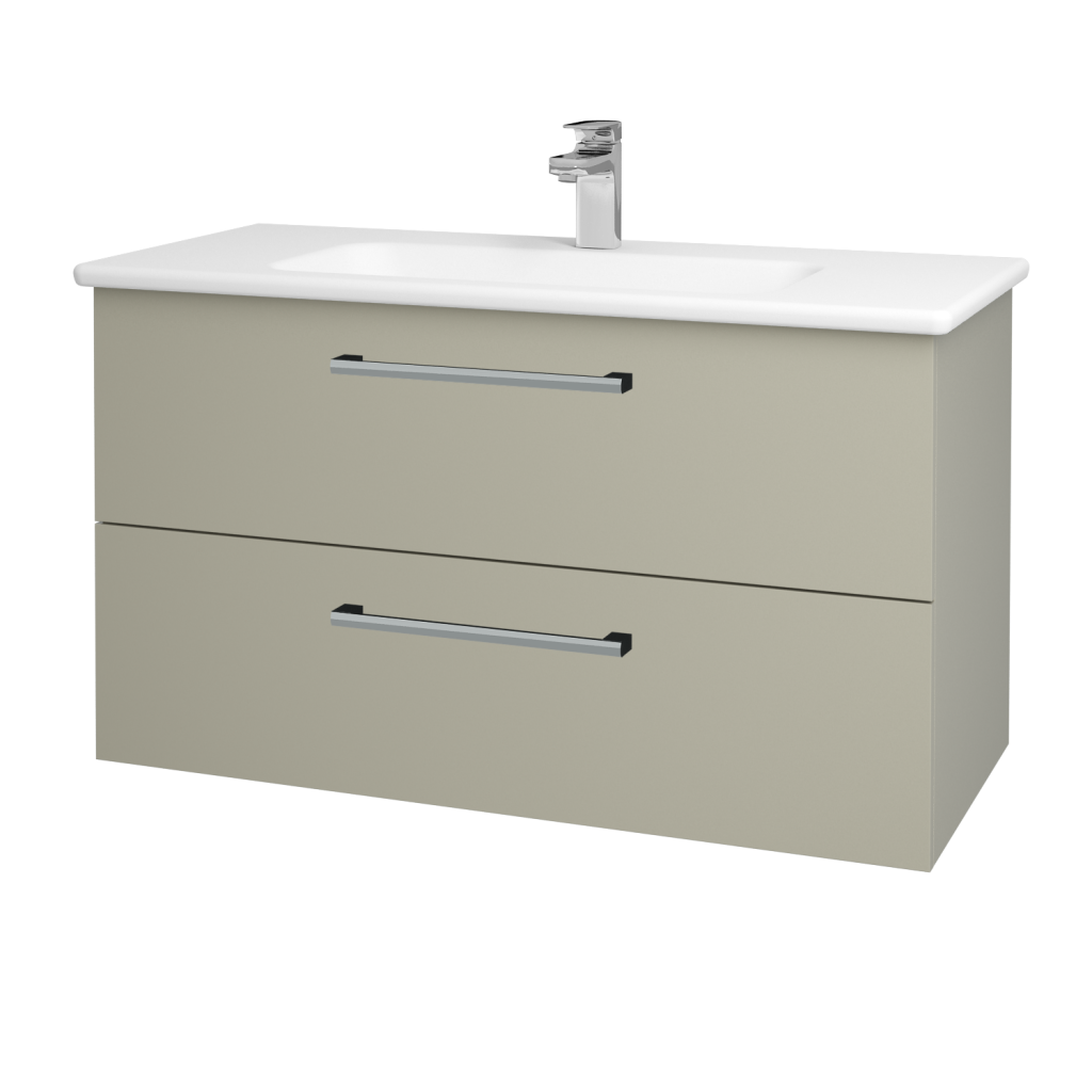 Kúpeľňová skrinka GIO SZZ2 100 v závesnom prevedení je vybavená dvoma priestornými zásuvkami. Skrinka je osadená keramickým s priestornou odkladacou plochou.