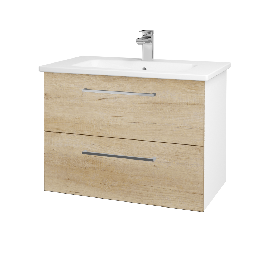 Kúpeľňová skrinka GIO SZZ2 80 v závesnom prevedení prekvapí svojim jednoduchým, ale elegantným dizajnom a priestorom, ktorý poskytuje dvojica zásuviek. Skrinka je osadená keramickým s priestornou odkladacou plochou.