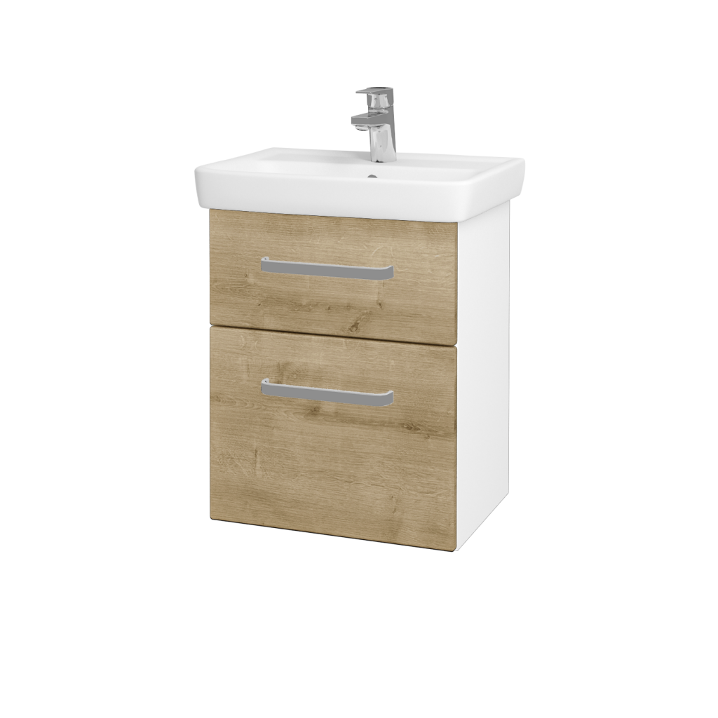 Závesná kúpeľňová skrinka GO SZZ2 50 s umývadlom (súčasťou ceny) a dvoma zásuvkami je súčasťou praktickej kolekcie , ktorej prednosti ocenia predovšetkým majitelia menších či stredných kúpeľní.