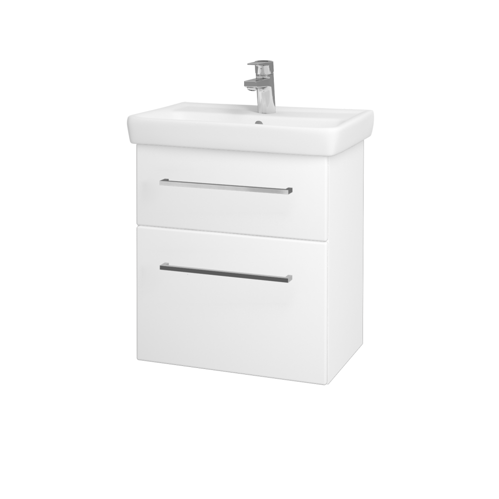 Závesná kúpeľňová skrinka GO SZZ2 55 s umývadlom (súčasťou ceny) a dvoma zásuvkami je súčasťou praktickej kolekcie , ktorej prednosti ocenia predovšetkým majitelia menších či stredných kúpeľní.