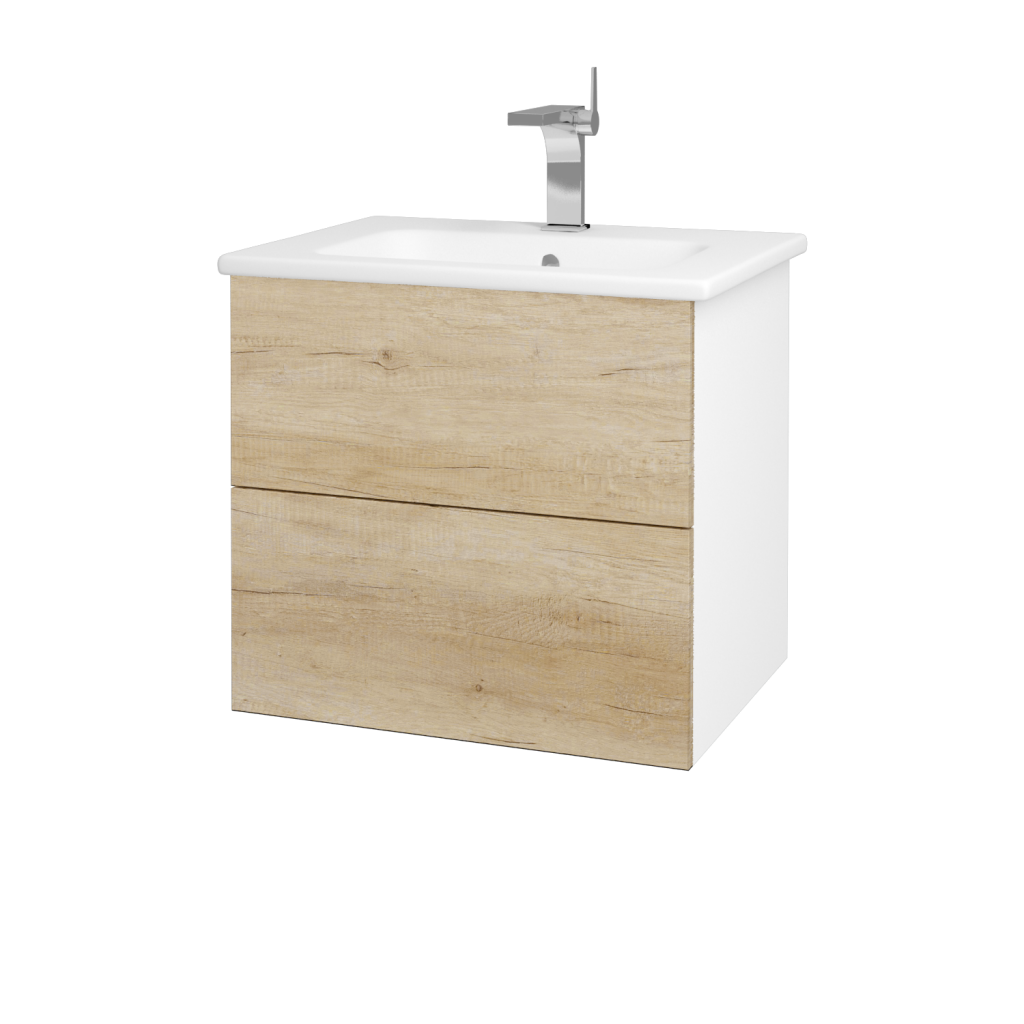 Kúpeľňová skriňa r v závesnom prevedení je v šírke 60 cm (vrátane umývadla), hodí sa preto do malých kúpeľní, kde nezaberie mnoho miesta, a pritom poskytne potrebný úložný priestor.