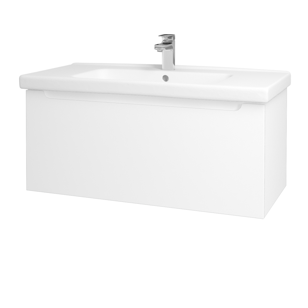 UmývadloSúčasťou ceny tejto kúpeľňovej skrinky je tiež . Bočnú a zadnú časť umývadla tvorí rovná plocha, ktorá môže slúžiť ako praktická odkladacia plocha, napr. na dávkovač mydla či ďalšie predmety potrebné pre každodennú hygienu.