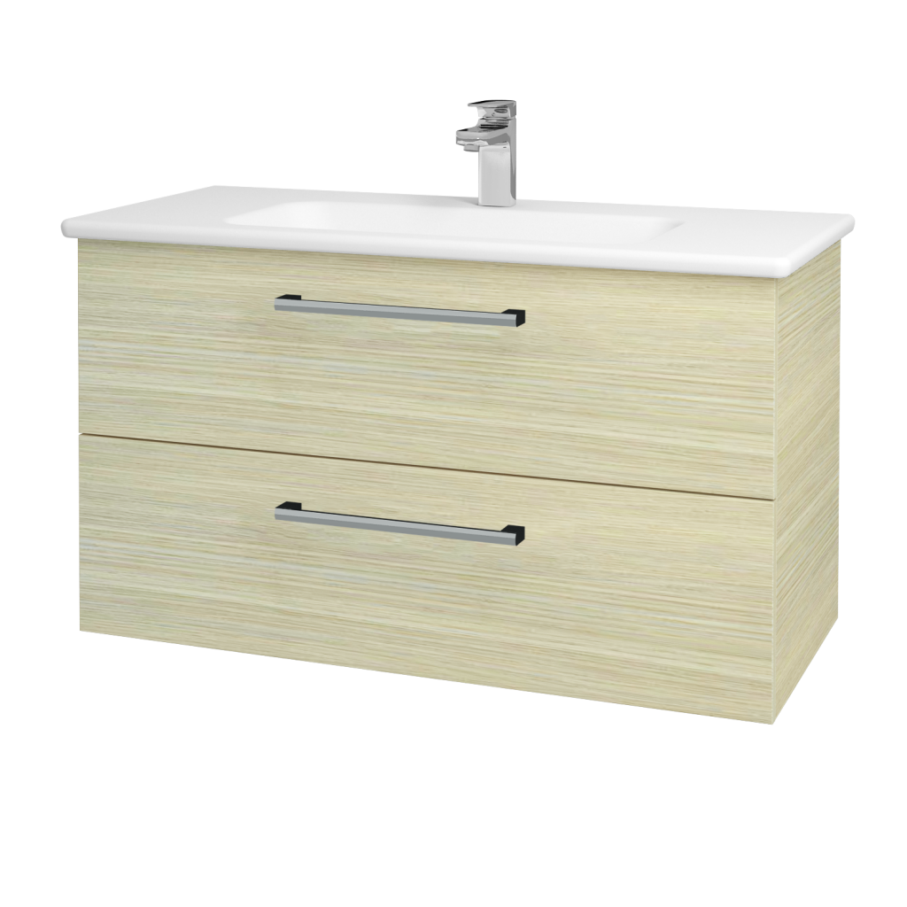 Kúpeľňová skrinka GIO SZZ2 100 v závesnom prevedení je vybavená dvoma priestornými zásuvkami. Skrinka je osadená keramickým s priestornou odkladacou plochou.