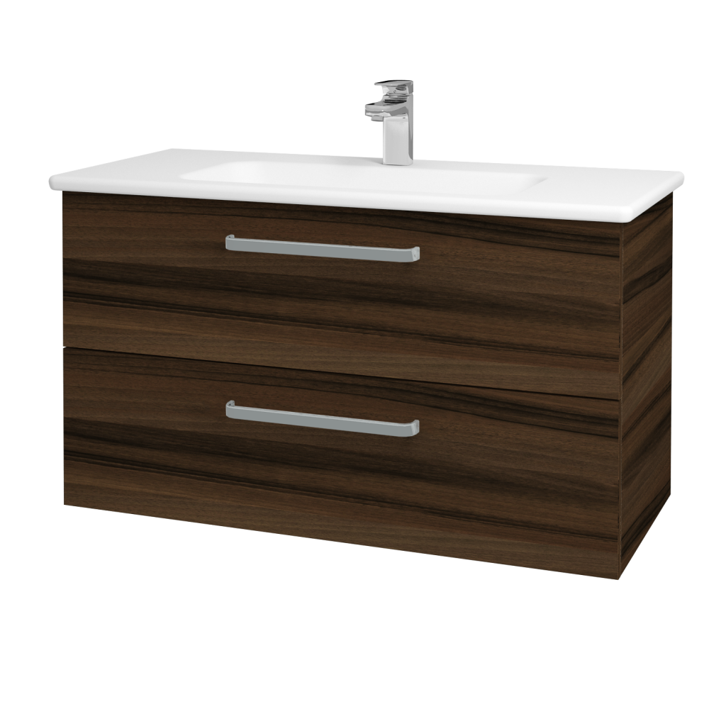 Kúpeľňová skrinka GIO SZZ2 100 v závesnom prevedení je vybavená dvoma priestornými zásuvkami. Skrinka je osadená keramickým s priestornou odkladacou plochou.