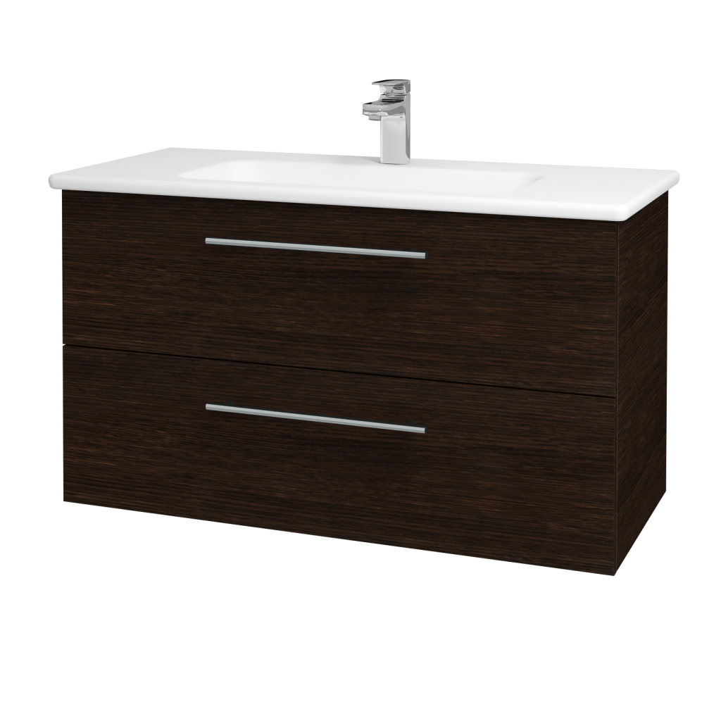 Kúpeľňová skrinka GIO SZZ2 100 v závesnom prevedení je vybavená dvoma priestornými zásuvkami. Skrinka je osadená keramickým s priestornou odkladacou plochou.