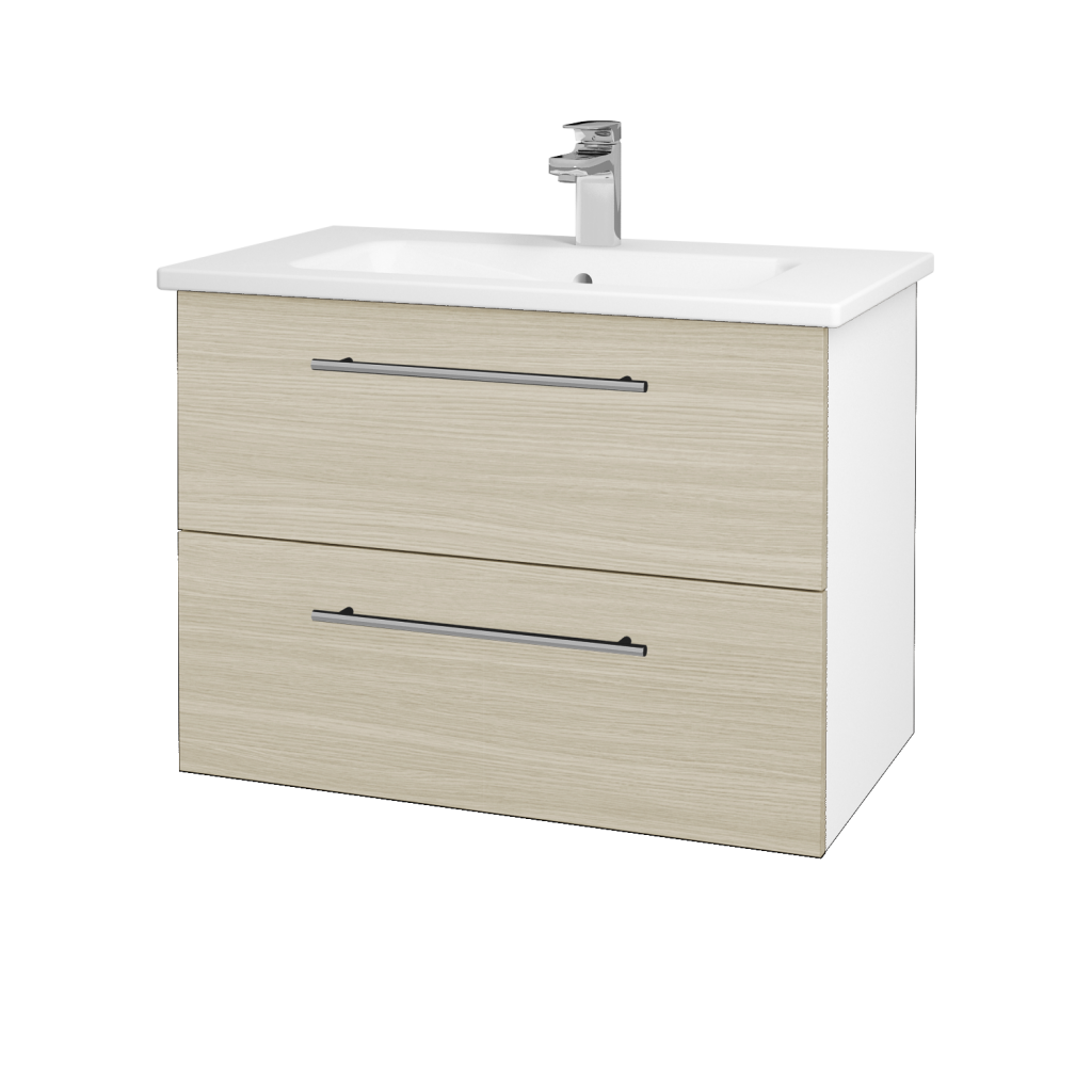 Kúpeľňová skrinka GIO SZZ2 80 v závesnom prevedení prekvapí svojim jednoduchým, ale elegantným dizajnom a priestorom, ktorý poskytuje dvojica zásuviek. Skrinka je osadená keramickým s priestornou odkladacou plochou.