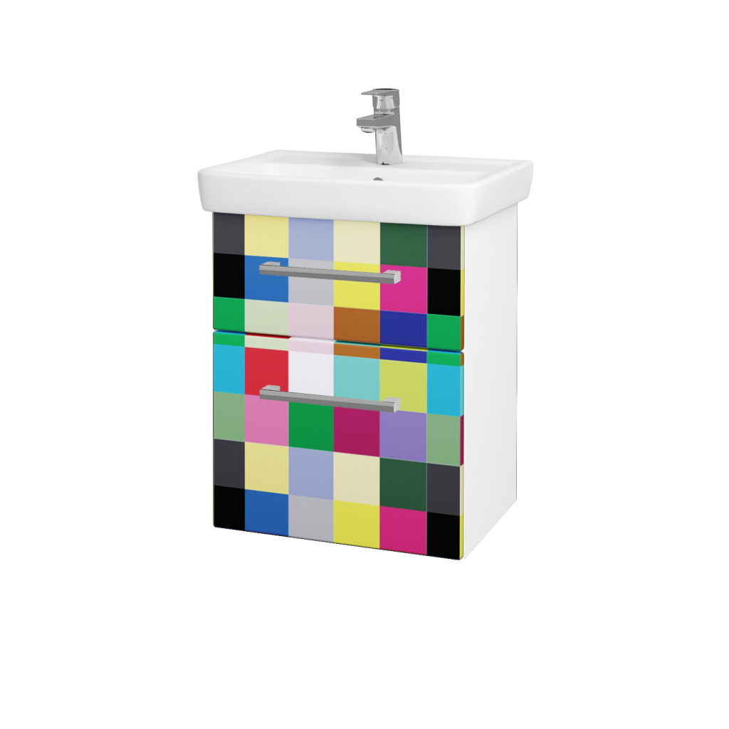 Závesná kúpeľňová skrinka GO SZZ2 50 s umývadlom (súčasťou ceny) a dvoma zásuvkami je súčasťou praktickej kolekcie , ktorej prednosti ocenia predovšetkým majitelia menších či stredných kúpeľní.