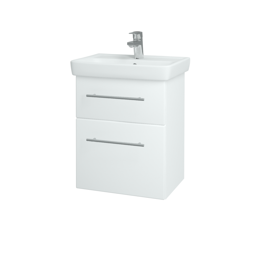 Závesná kúpeľňová skrinka GO SZZ2 50 s umývadlom (súčasťou ceny) a dvoma zásuvkami je súčasťou praktickej kolekcie , ktorej prednosti ocenia predovšetkým majitelia menších či stredných kúpeľní.
